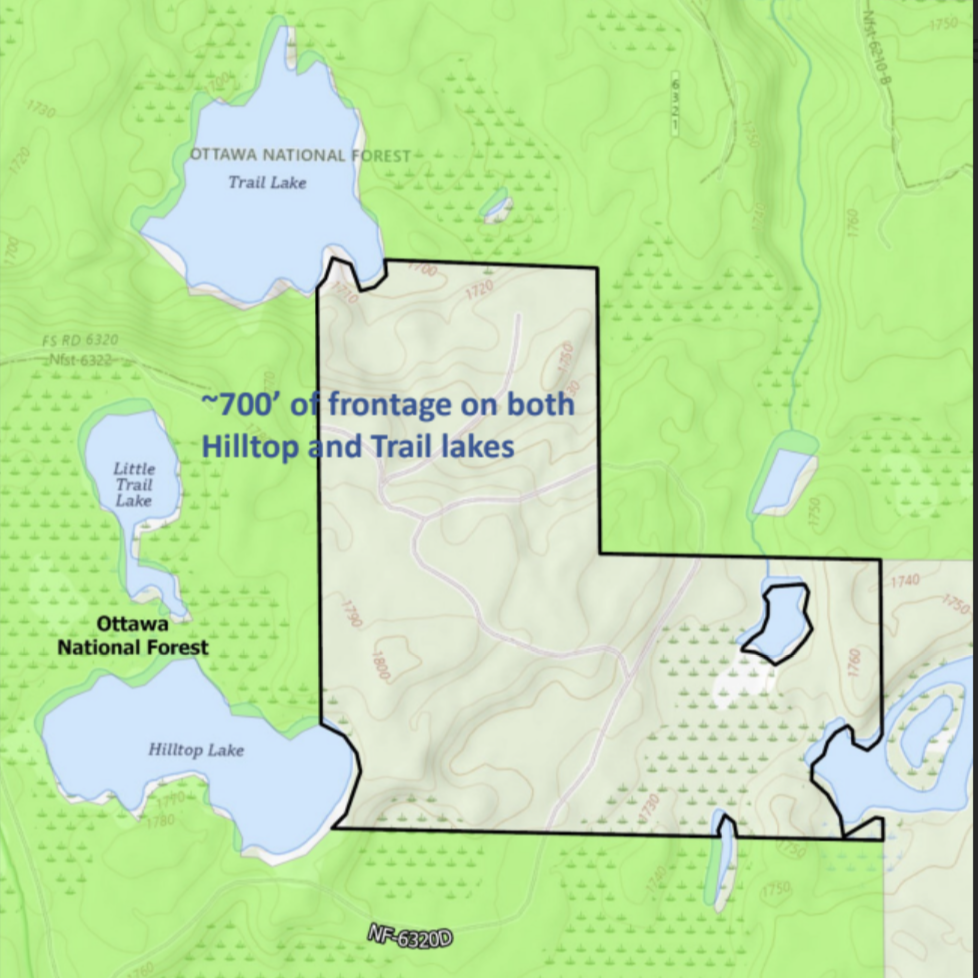 Hilltop-Trail Lakes is a new Community Forest project that seeks to protect ecologically rich aquatic habitats and public access. This 120-acre project would protect the only non-USFS land on both of the lakes, and is located in close proximity to the Sylvania Wilderness Area. Protecting this private inholding in Forest Service lands will conserve the high quality and unique bog and bird habitat features of this landscape.