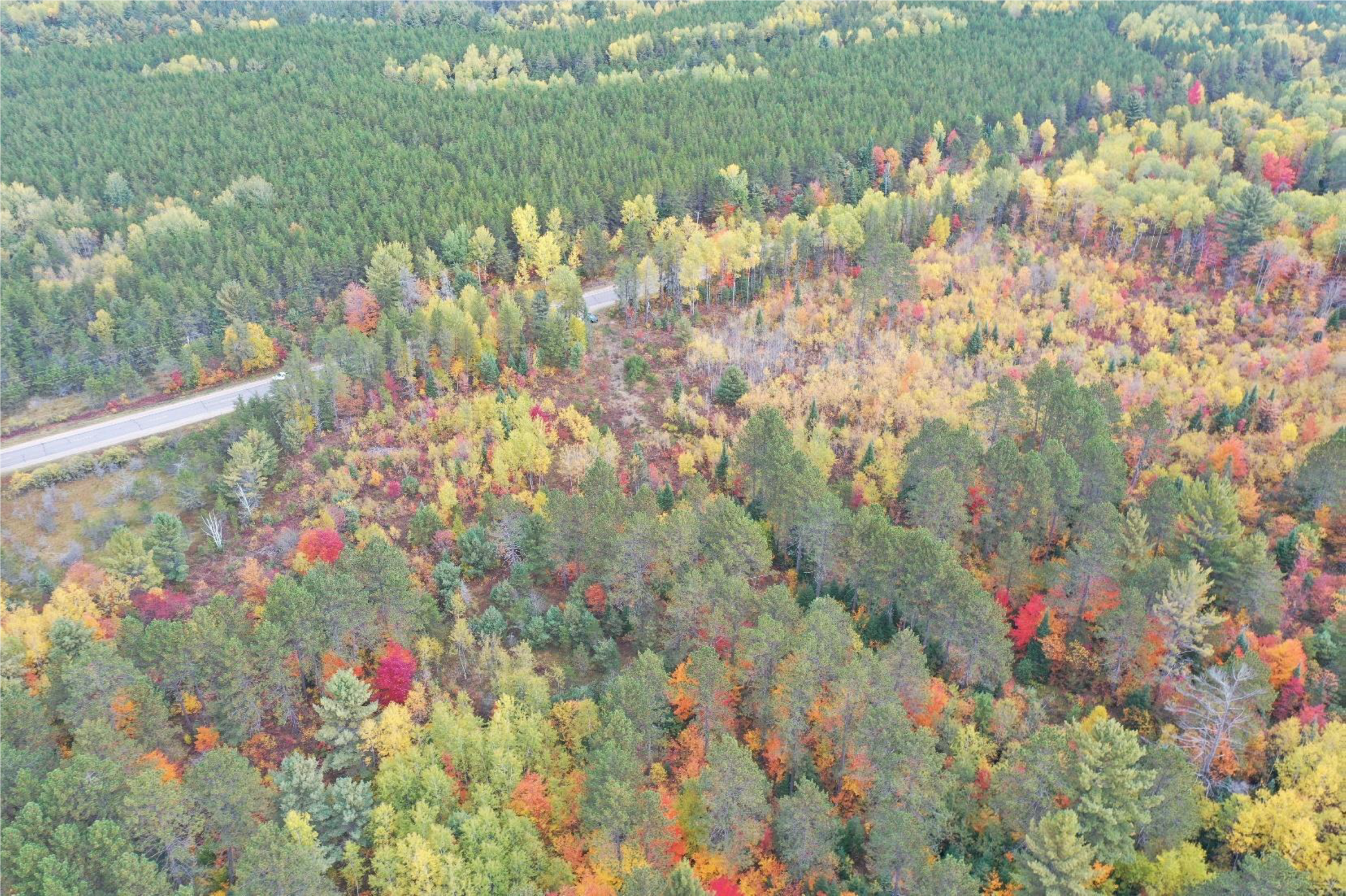 Highway E creates the border between the Upper Wisconsin River Legacy Forest (above) and the Upper Wisconsin River Bird Habitat (below).